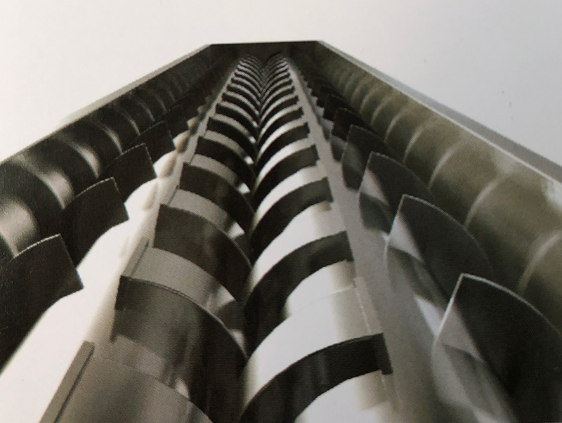 空心軸上密集排列著楔型中空槳葉,熱介質(zhì)經(jīng)空心軸流經(jīng)槳葉。單位有效容積內(nèi)傳熱面積很大,熱介質(zhì)溫度從-40℃到320℃,可以是水蒸汽,也可以是液體型:如熱水、導(dǎo)熱油等。間接傳導(dǎo)加熱,沒有攜帶空氣帶走熱量,熱量均用來加熱物料。熱量損失僅為通過器體保溫層向環(huán)境的散熱。楔型槳葉傳熱面具有自清潔功能。物料顆粒與楔型面的相對(duì)運(yùn)動(dòng)產(chǎn)生洗刷作用,能夠洗刷掉楔型面上附著物料,使運(yùn)轉(zhuǎn)中一直保持著清潔的傳熱面。槳葉干燥機(jī)的殼體為M型,売體內(nèi)一般安排二到四根空心攪拌軸。殼體有密封端蓋與上蓋,防止物料粉塵外泄及收集物料溶劑蒸汽。出料口處設(shè)置一擋扳,保證料位高度,使傳熱面被物料覆蓋而充分發(fā)揮作用。熱介質(zhì)通過旋轉(zhuǎn)接頭,流經(jīng)売體夾套及空心攪拌軸,空心攪拌軸依據(jù)熱介質(zhì)的類型而具有不同的內(nèi)部結(jié)構(gòu),以保證最佳的傳熱效果。